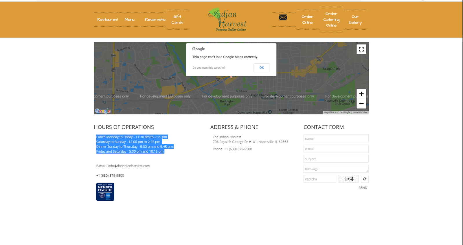 If you doesn’t add API key while publishing your google map on your site you will get the page as below: