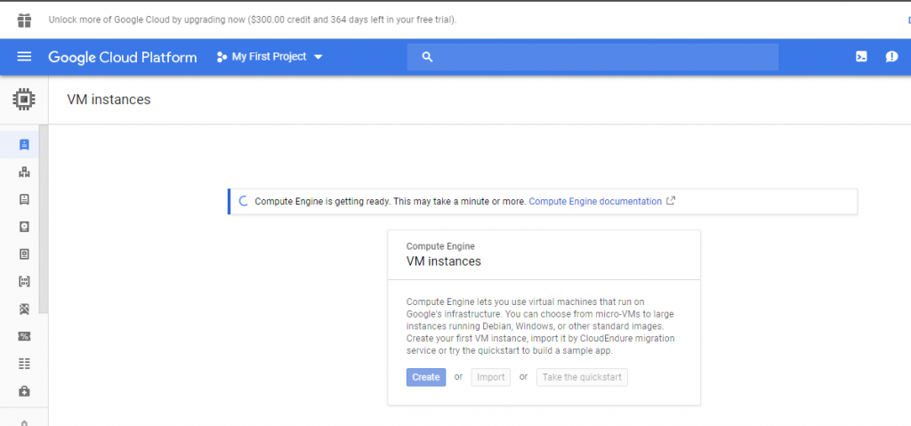 You can find Compute Engine is getting ready.It might take a minute