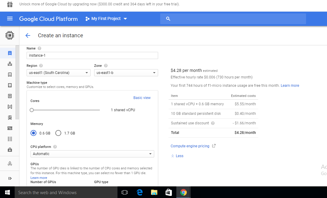 Region – Compute Engine and Cloud Storage are eligible for Always Free in us-east1, us-west1, and us-central1 regions. The usage limits are for all three regions combined. For example, for a month of Cloud Storage usage, you can use 5 GB of Regional Storage in us-central1 or 2 GB in us-central1 and 3 GB in us-west1.