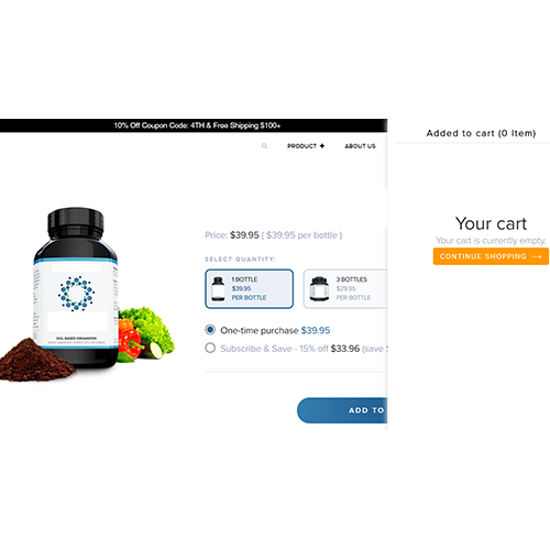 Due to better design and functional development of Ajax Cart, We gave customers happy path to view and order the products directly from the product page after adding products on cart drawer to checkout for both one-time and subscription purchase in the webiste.