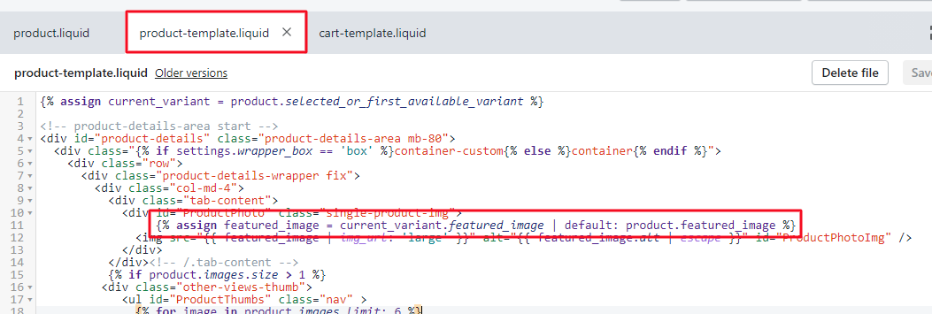 {% assign featured_image = current_variant.featured_image | default: product.featured_image %}