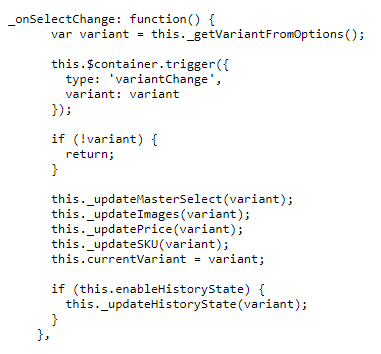 To change the variant image as the user selects different variants, we’ll need to use the below JavaScript.