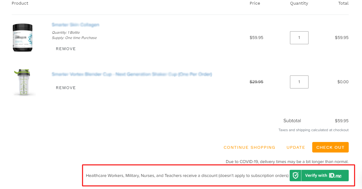 3. Now you can check the output on the cart page with the button “Verify Id.me ” where the ID.me discounts offers are applied with particular community categories.