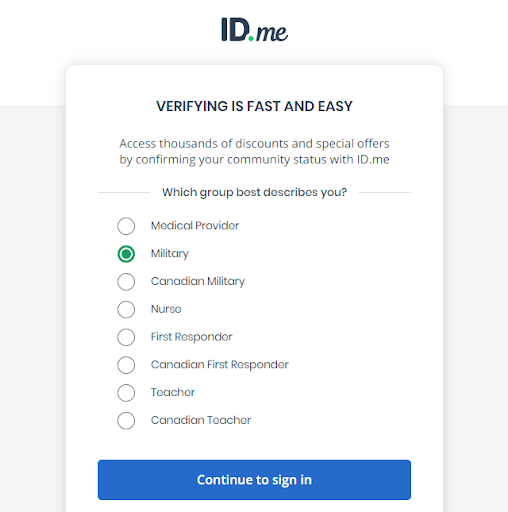 4. Click on the ID.me if you are from a registered community, can login with your credentials to get the discount offer.