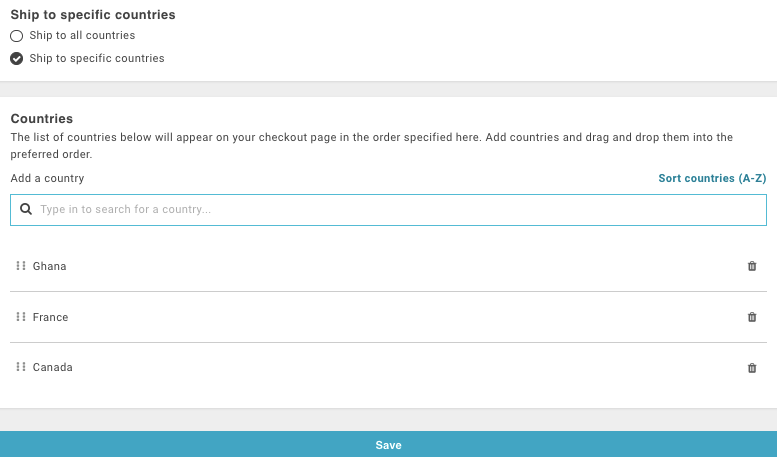 If you do not ship to all countries, you will need to identify the countries you ship to in the Recharge app