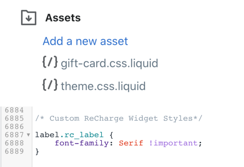 Then click on the “Assets” folder and select “theme.css.liquid”. Here need to add the custom CSS for the subscription