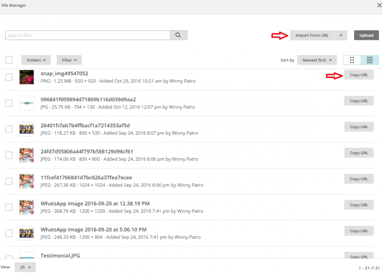Click on file manager where you can select or copy url or either can import new url upload once your are ready to paste in your content for your campaign!!!