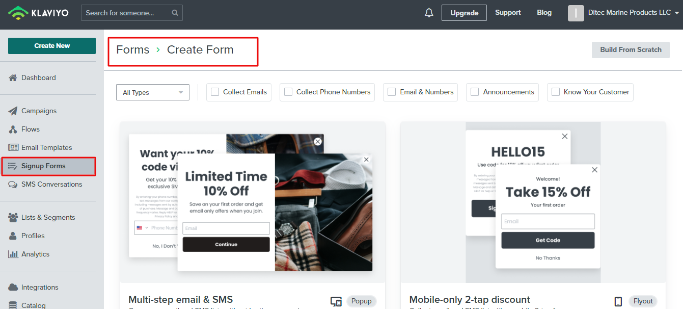 Create a Sign-up form. We can build the form from scratch or select any one of the in-built templates available in Klaviyo.