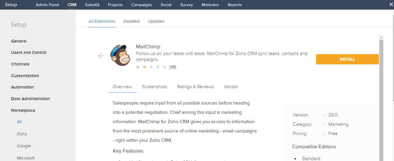 2. Search for Mailchimp extension and install , if you dont have the extension installed.