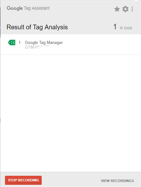 Open the Chrome browser, and install Tag Assistant. Once Tag Assistant is installed, simply navigate to a page on your site, and click on the tag icon at the top of your browser. You should see a green tag labeled “Google Tag Manager”, indicating that GTM has been successfully installed.