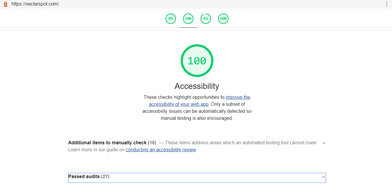 We can also find for the Accessibility errors from few tools like web.dev, accessiBe, Lighthouse reports. After following all the above mentioned steps we can achieve 100% Accessibility Score.